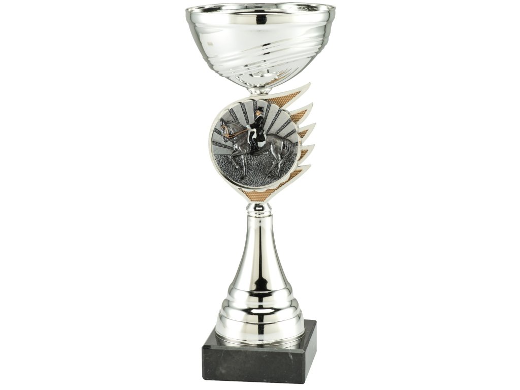 A kehely stílusos megjelenését a márvány talapzaton elhelyezett fém kehely alatt a 3D BL-emblémának helyet adó domináns elem teremti meg. Ideális választás minden sporttípushoz, és kiegészül a lovas témájú emblémával + az aljzaton elhelyezett gravírozott címke lehetőségével. A változatok 3 méretben állnak rendelkezésre a fokozatos díjrendeléshez.