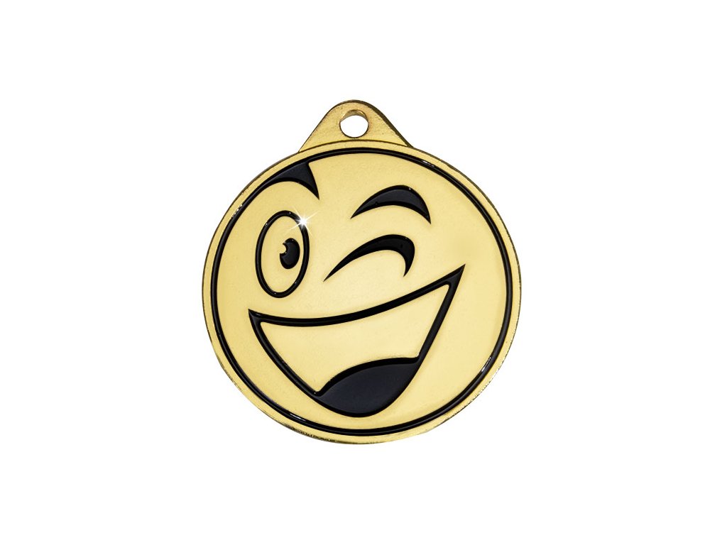 Metál érem mosoly motívummal, arany kivitelben szalagra akasztható (az Ön választása szerint). Az érem hátoldalán lehetőség van grafika/szöveg elhelyezésére(40mm átmérő).