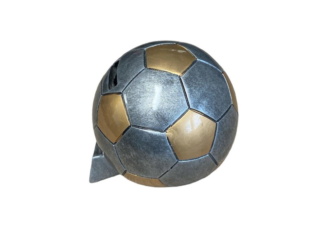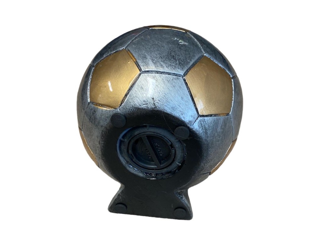 Egyedi futball alakú pénztárgép, amelynek aljára gravírozott címke helyezhető. A pénzes doboz alján egy lyuk található a kényelmes pénzkivételhez(lásd a képen).