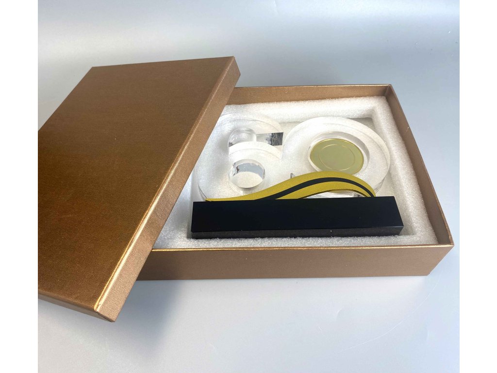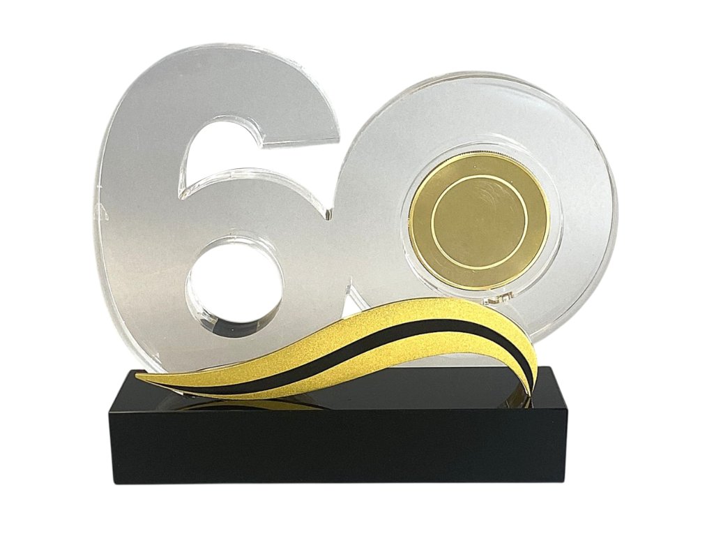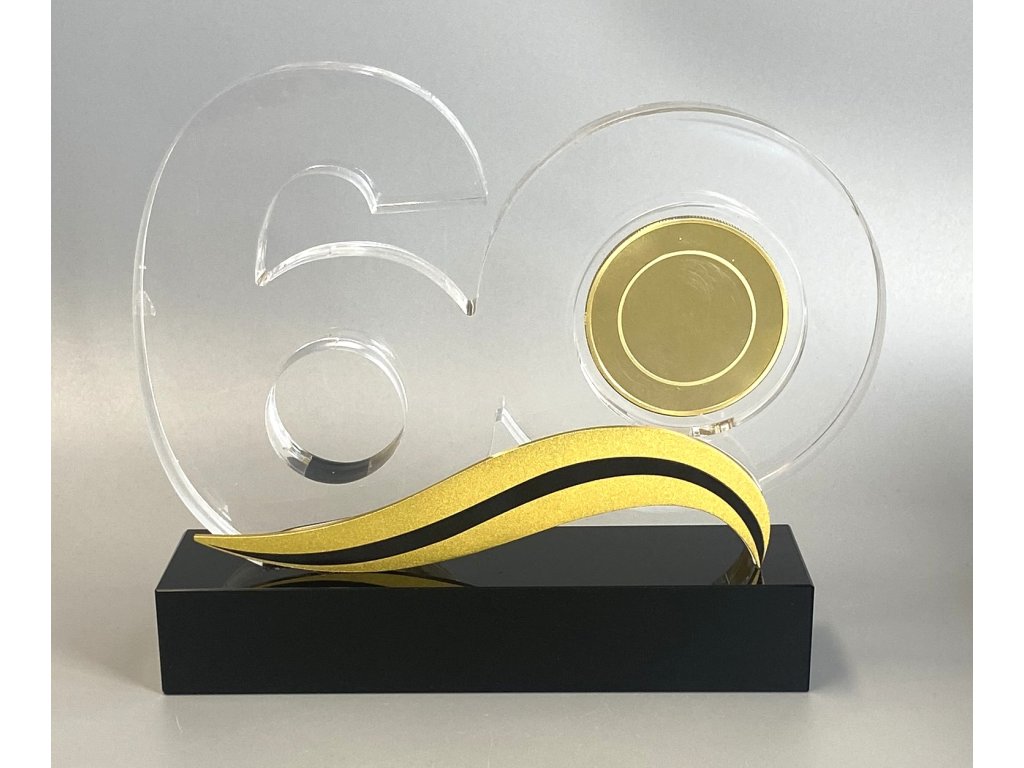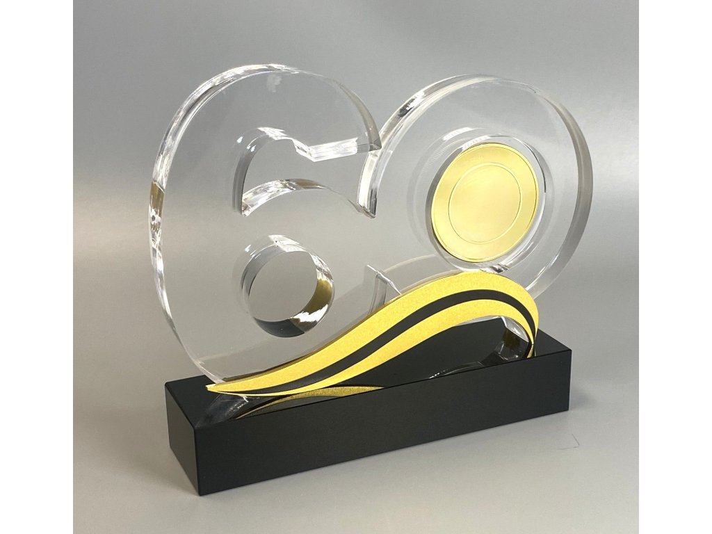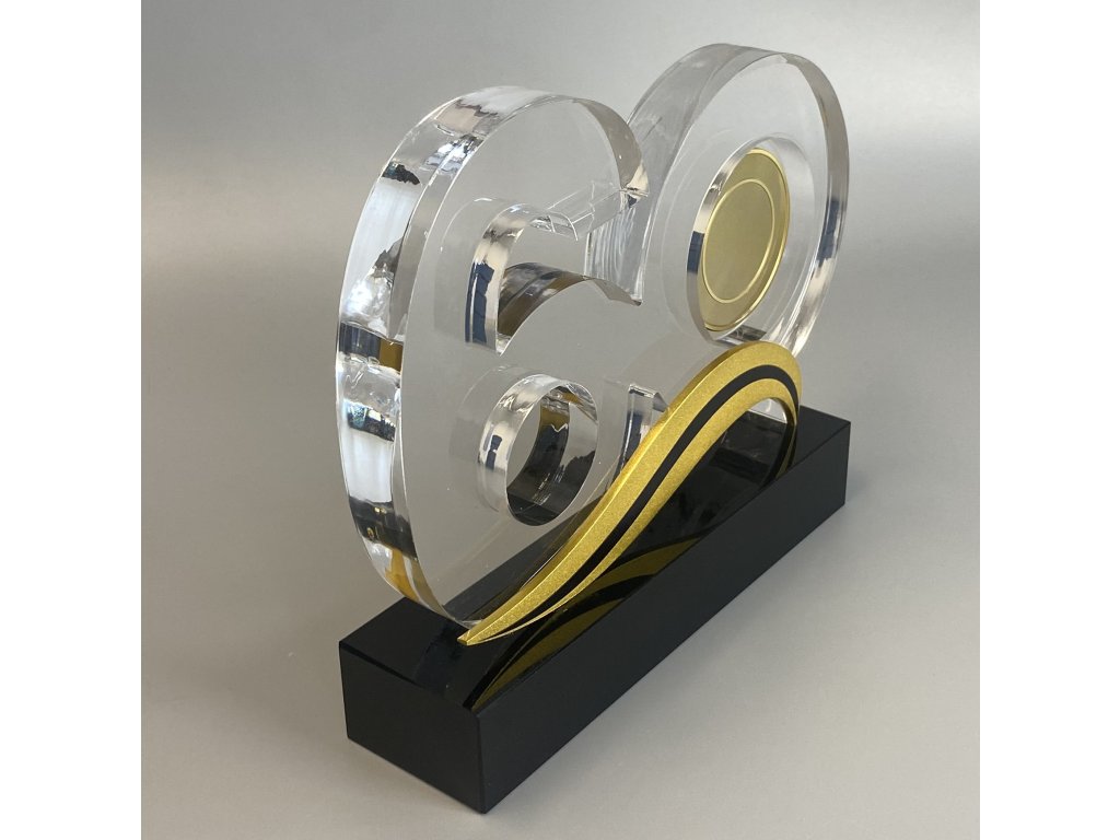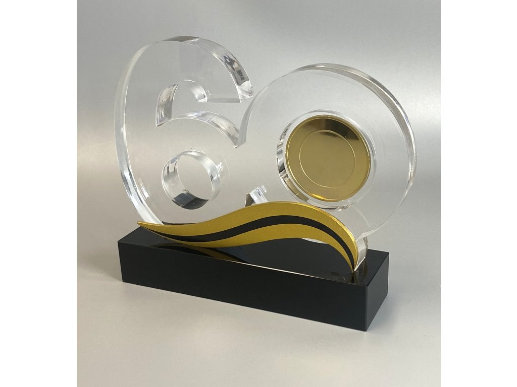Stílusos akril jubileumi pohár aranyszínű részletekkel az alapon, elegáns kivitelben, különösen alkalmas a jubilánsok számára, logó/szöveg hozzáadásának lehetőségével egy fémérmén, valamint egy gravírozott lemezzel az alapon. . A pohár kialakítása ideális választás különböző típusú társadalmi eseményekhez, különleges sporteseményekhez stb.