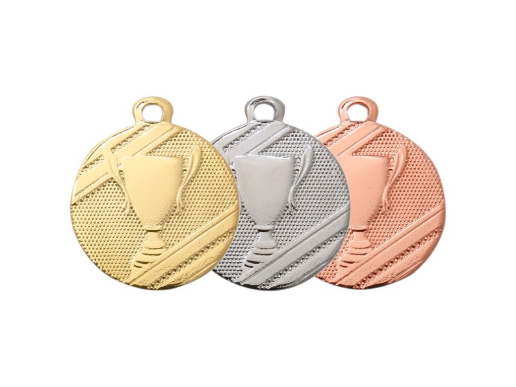 A medál arany, ezüst vagy bronz kivitelben, szalagra akasztható (az Ön választása szerint). Grafika/szöveg elhelyezése lehetséges az érem hátoldalán (25 mm átmérőjű).