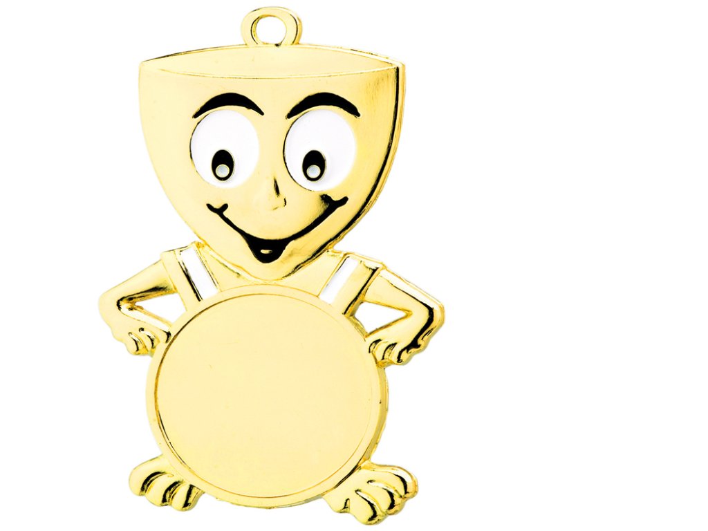 Metál érem gyermekmotívummal, arany kivitelben szalagra akasztható (tetszés szerint). Az elülső oldalon lehetőség van saját embléma grafika/szöveg elhelyezésére (25mm átmérő), a hátoldalon pedig grafika/szöveg elhelyezésére (25mm átmérő).