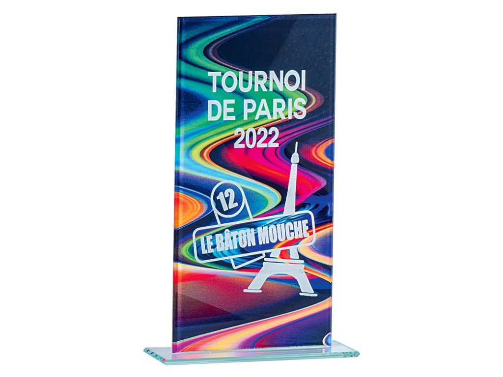 Stílusos üveg trófea többszínű háttérhatással, az üvegre történő gravírozás lehetőségével. Az üveg kialakításnak köszönhetően ideális választás különböző típusú társadalmi eseményekre, különleges sporteseményekre stb.