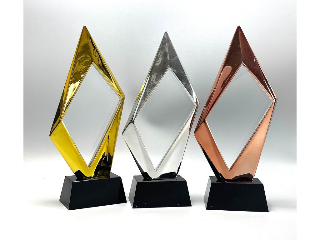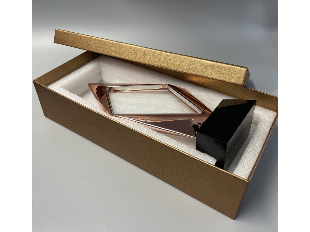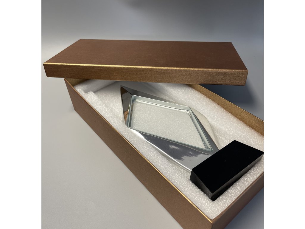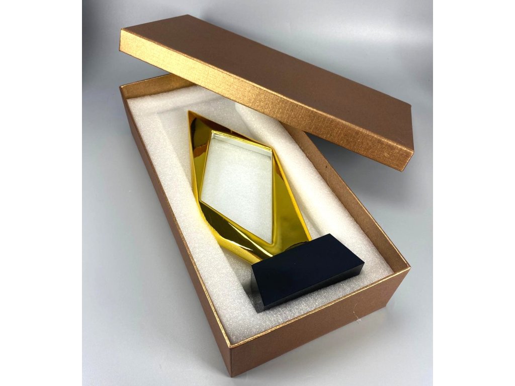 Stílusos üveg arany kerettel elegáns kivitelű talapzaton, az üvegre történő gravírozás lehetőségével. A pohár kialakítása ideális választás különböző típusú társadalmi eseményekhez, különleges sporteseményekhez stb.