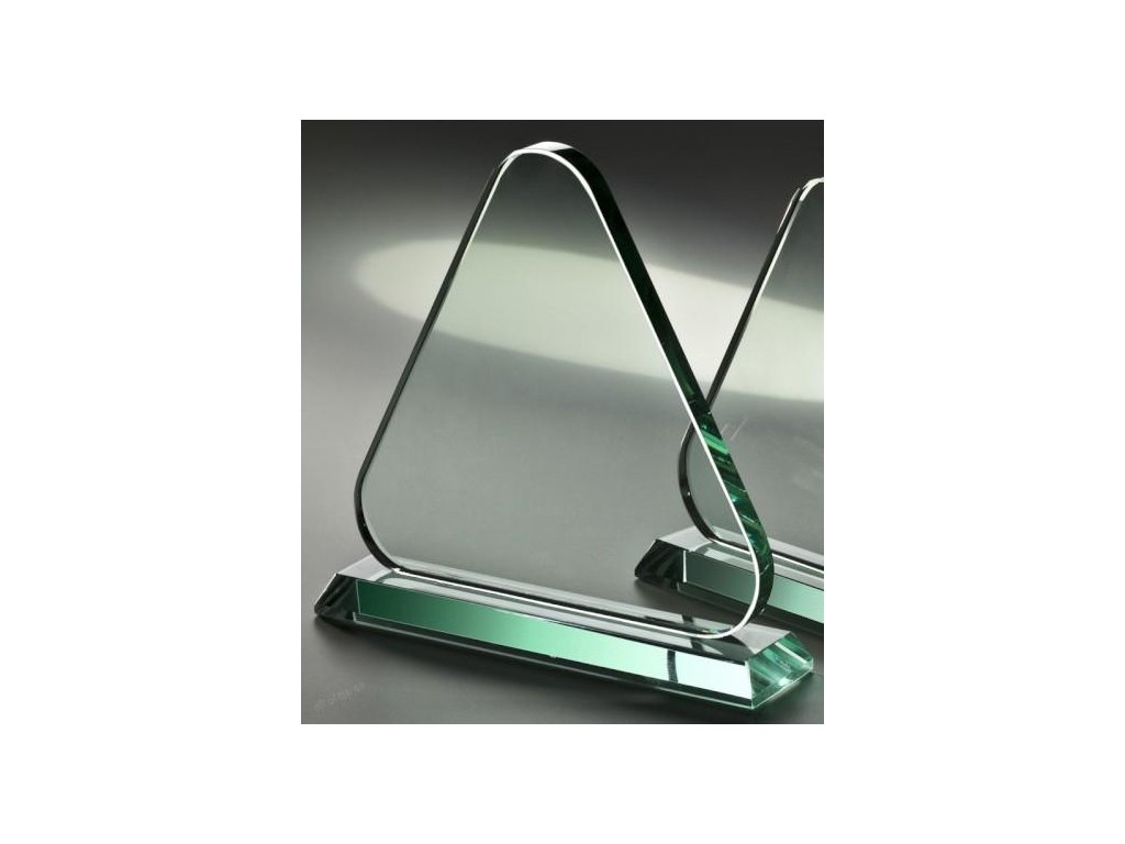 Elegáns üveg trófea atipikus formában, talapzaton, az üvegre történő gravírozás lehetőségével. A trófea kialakítása miatt ideális választás különböző típusú társadalmi eseményekre, különleges sporteseményekre stb.