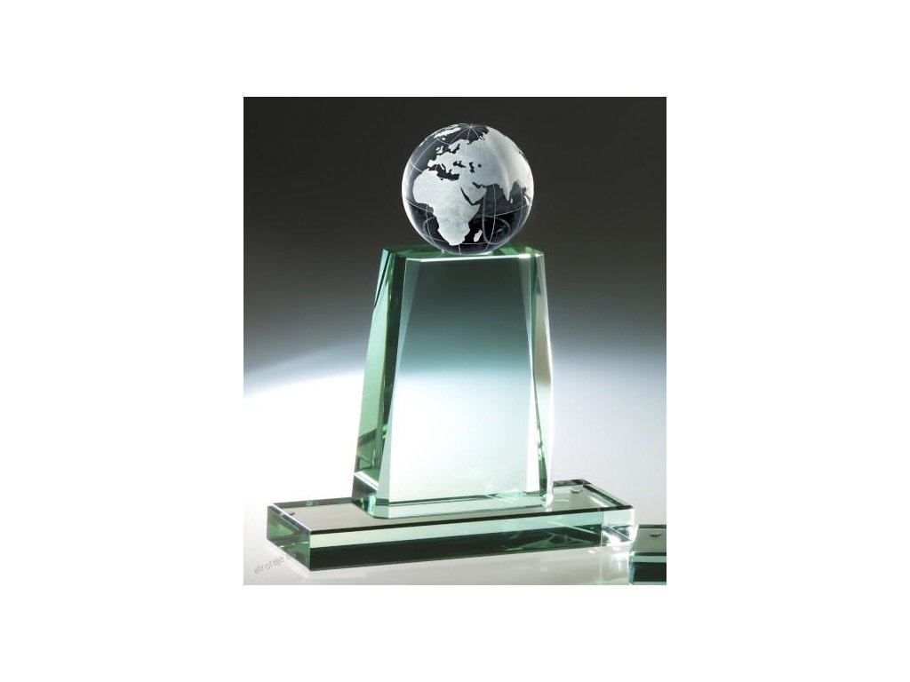 Elegáns üveg trófea üveg talapzatra szerelt földgömbbel, üvegbe vésett gravírozással. A trófea kialakítása miatt ideális választás különböző típusú társadalmi eseményekre, különleges sporteseményekre stb.
