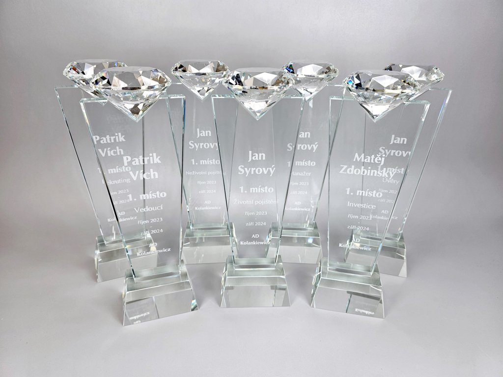 Stílusos üveg, tetején beállított tiszta gyémánttal, az üvegbe gravírozás lehetőségével. A pohár kialakítása ideális választás különféle társasági eseményekhez, különleges sporteseményekhez stb.
