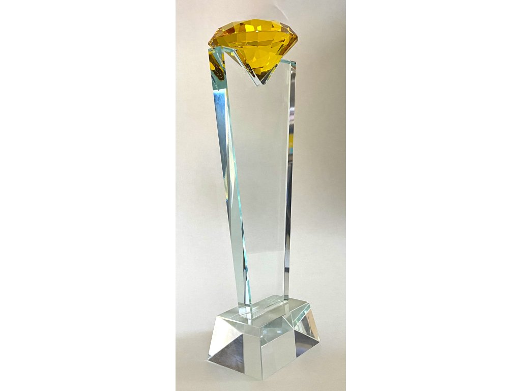 Stílusos pohár, tetején arany gyémánttal, gravírozási lehetőséggel az üvegre. A pohár kialakítása ideális választás különféle társasági eseményekhez, különleges sporteseményekhez stb.