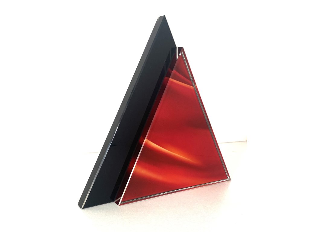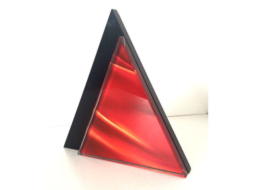Stílusos háromszögletű üveg trófea fekete/piros színben, az üvegre gravírozással. Az üveg kialakításnak köszönhetően ideális választás különböző típusú társadalmi eseményekre, különleges sporteseményekre stb.