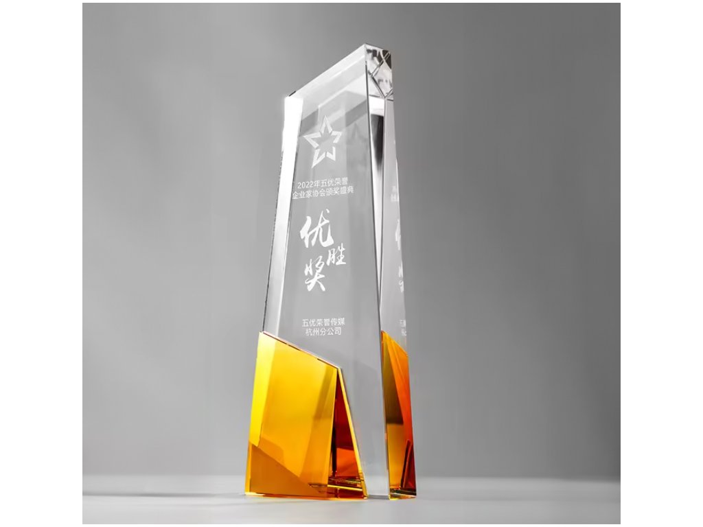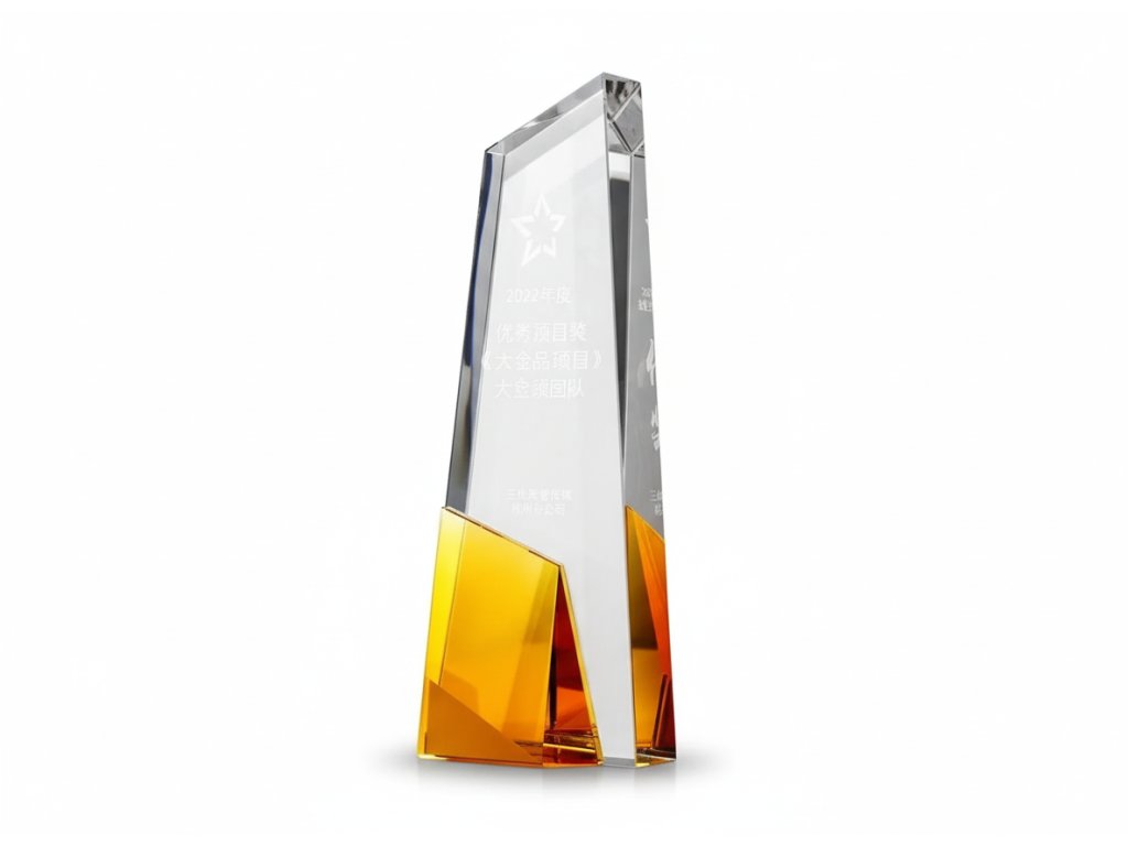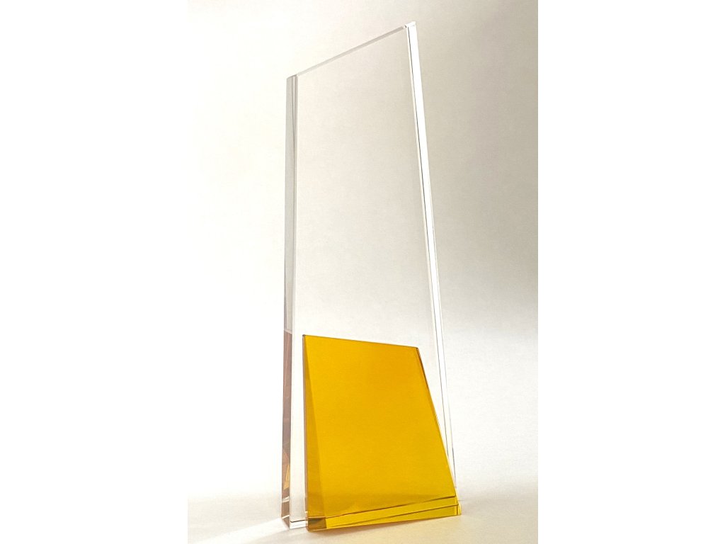Stílusos üveg trófea aranyszínű üveggel kombinálva, az üvegre történő gravírozás lehetőségével. Az üveg kialakításnak köszönhetően ideális választás különböző típusú társasági eseményekre, különleges sporteseményekre stb.