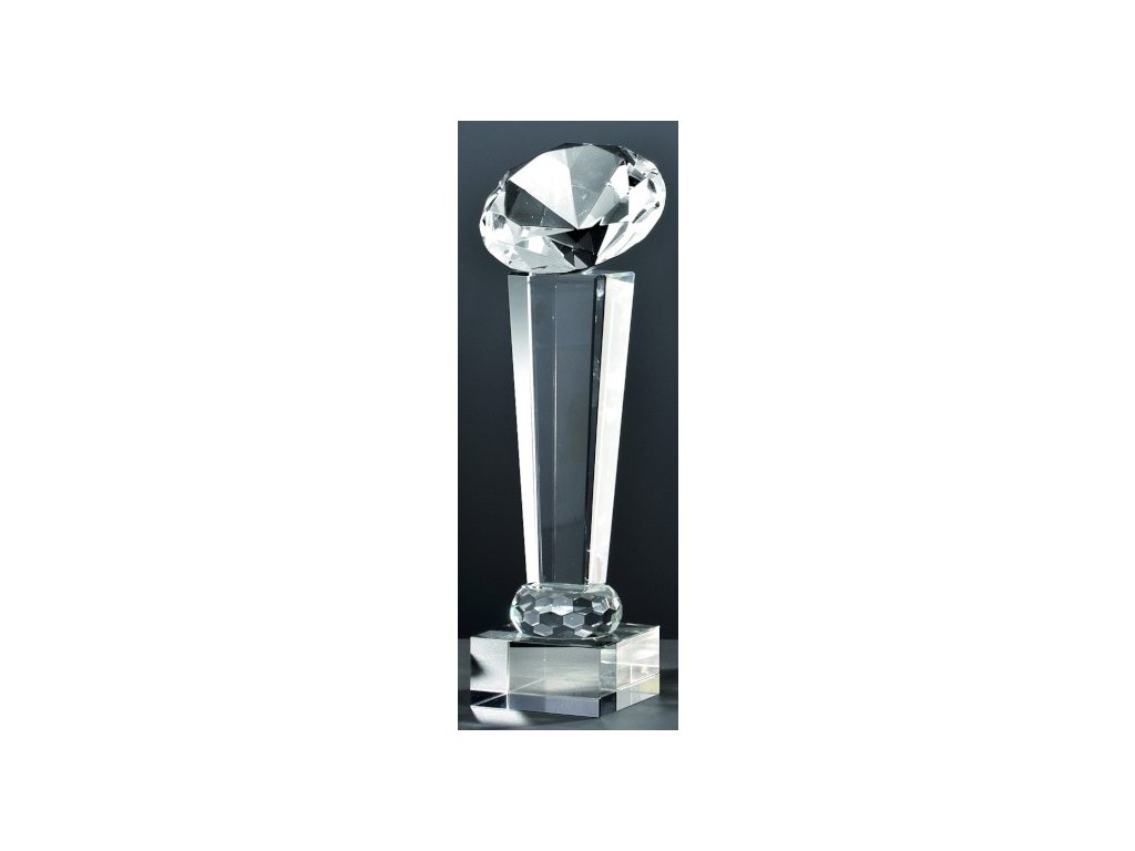 Elegáns üvegtrófea, melynek tetején tiszta gyémánt van, az üvegbe gravírozás lehetőségével. Az üveg kialakításnak köszönhetően ideális választás különböző típusú társadalmi eseményekre, különleges sporteseményekre stb.