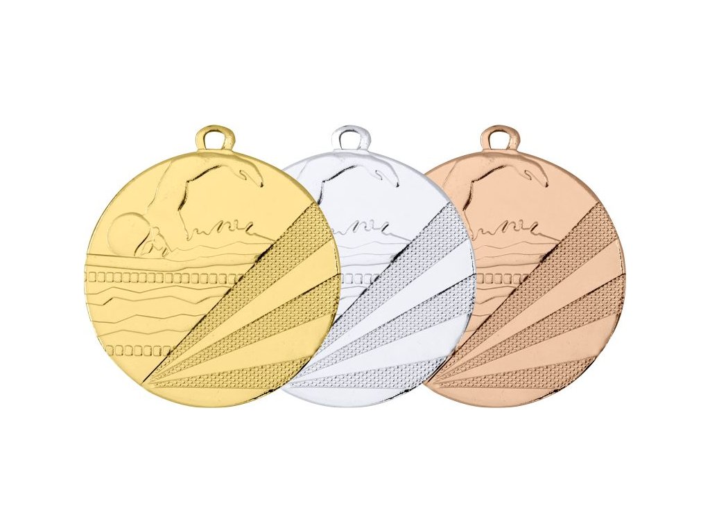 Metál érem úszó motívummal, arany, ezüst vagy bronz kivitelben szalagra akasztható (az Ön választása szerint). Az érem hátoldalán lehetőség van grafika/szöveg elhelyezésére (átmérő 45mm).