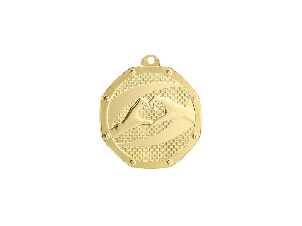 Metál érem arany kivitelben szalagra akasztható (az Ön választása szerint). Az érem hátoldalán lehetőség van grafika/szöveg elhelyezésére (45 mm átmérőjű).