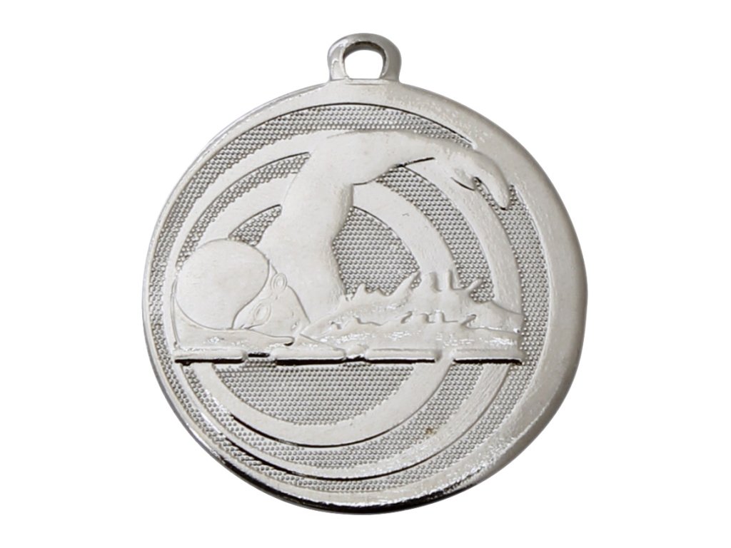 Metál érem úszó motívummal, ezüst kivitelben szalagra akasztható (az Ön választása szerint). Az érem hátoldalán lehetőség van grafika/szöveg elhelyezésére (átmérő 45mm).