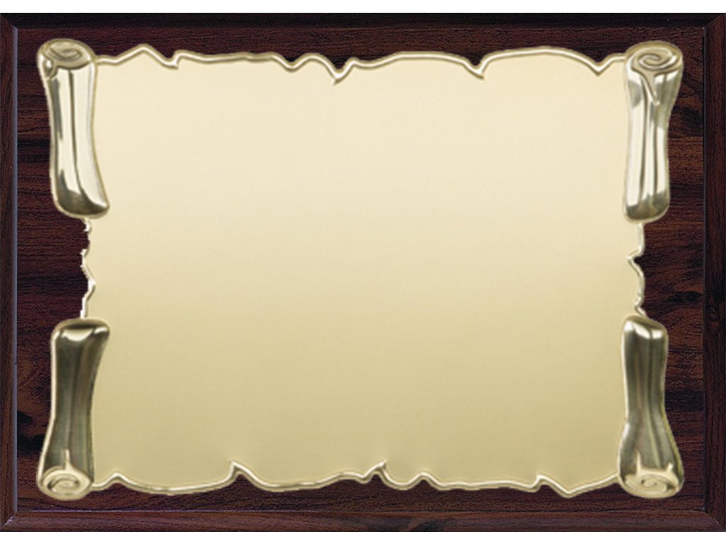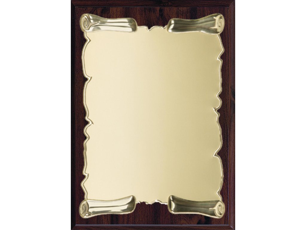 Elegáns, sötét árnyalatú fából készült emléktábla, amely felakasztható/állványra helyezhető. Aranyszínű fényű, dekoratív fémre van gravírozva, amely enyhe 3D papirusz hatást kelt.A plakett a részletekre és a dizájnra való odafigyeléssel készült, ami egyedi jelleget kölcsönöz a megjelenésének.A plakett kialakítása miatt ideális választás különböző típusú társadalmi eseményekhez, különleges sporteseményekhez stb. Az ár tartalmazza a szublimálást.