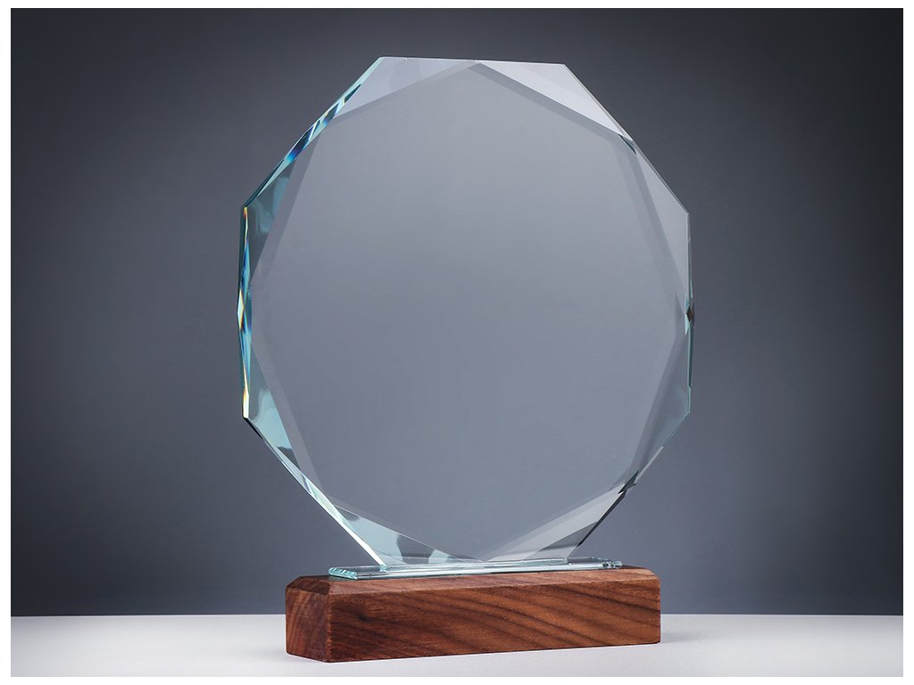Stílusos üveg fa alapon, az üvegre történő gravírozás lehetőségével. Az üveg dizájn ideális választás különböző társadalmi eseményekhez, különleges sporteseményekhez stb.