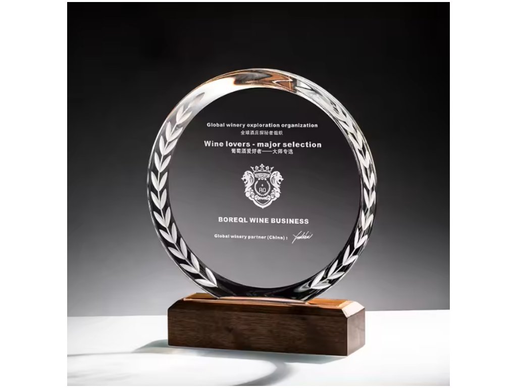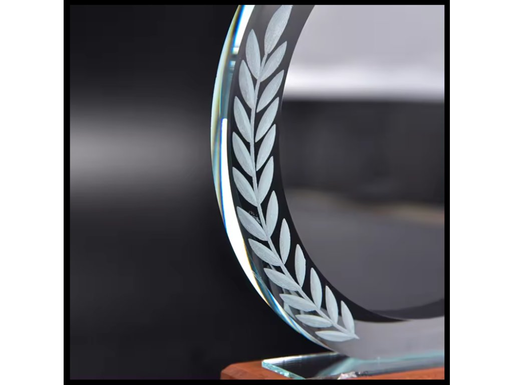 Stílusos üveg fa alapon, fazettált élekkel, előre gravírozott babérkoszorúval, az üvegre gravírozás lehetőségével. A pohár kialakítása ideális választás különféle társasági eseményekhez, különleges sporteseményekhez stb.