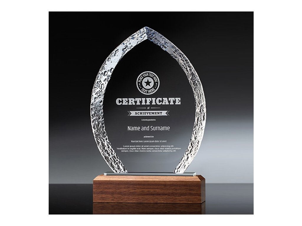 Stílusos üveg fa alapon, a széleken érdekes hatású, az üvegre gravírozási lehetőséggel. A pohár kialakítása ideális választás különféle társasági eseményekhez, különleges sporteseményekhez stb.