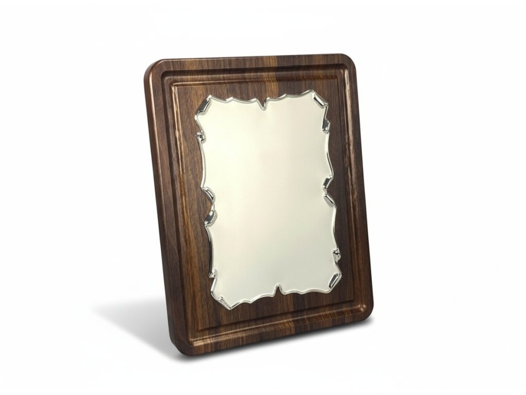 A stílusos fa plakett, amely felakasztható vagy alátámasztással, magasságban vagy akár szélességben is, sötét árnyalatú fából készült. A szublimációs hordozó egy dekoratív lap, amely ezüst vagy arany kivitelben, 3D-s díszítéssel az oldalán. A plakett a részletekre és a dizájnra való odafigyeléssel készült, ami egyedi jelleget kölcsönöz megjelenésének. A plakett kialakítása miatt ideális választás különböző típusú társadalmi eseményekhez, különleges sporteseményekhez stb.