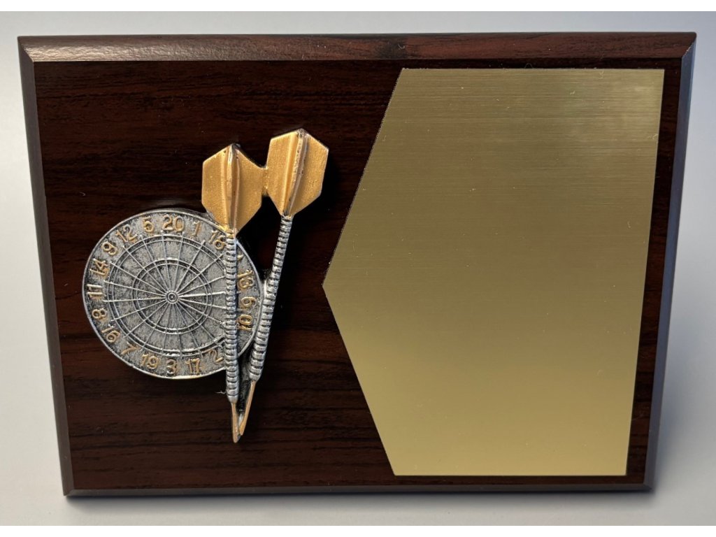 Elegáns, sötét fából készült emléktábla 3D-s nyílfigurával és gravírozott tábla opcióval. A tábla állványra akasztható/állványra helyezhető.A tábla kialakítása miatt ideális választás különböző típusú társadalmi eseményekre, különleges sporteseményekre stb. Az ár tartalmazza a gravírozást.