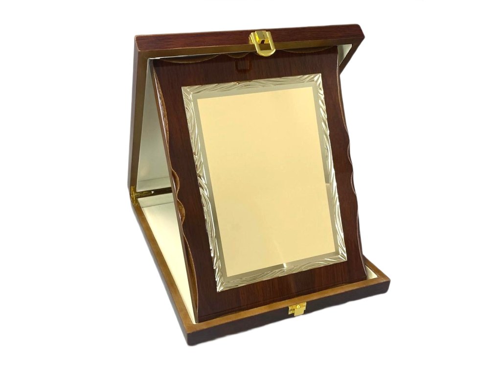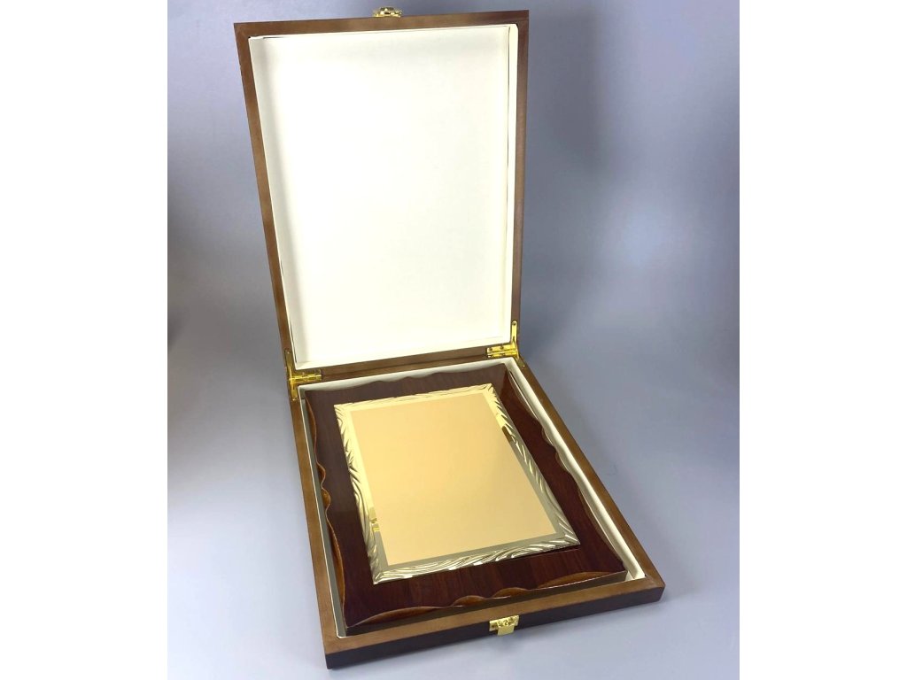 Az elegáns emléktábla egy fényűző, fából készült portréorientációs dobozban van elhelyezve. A szublimációs hátlap egy dekoratív lap, amely aranyló fényű tükrös részletekkel az oldalán. A plakett kialakítása ideális választás különböző típusú társadalmi eseményekhez, különleges sporteseményekhez stb. Az ár tartalmazza a szublimálást.