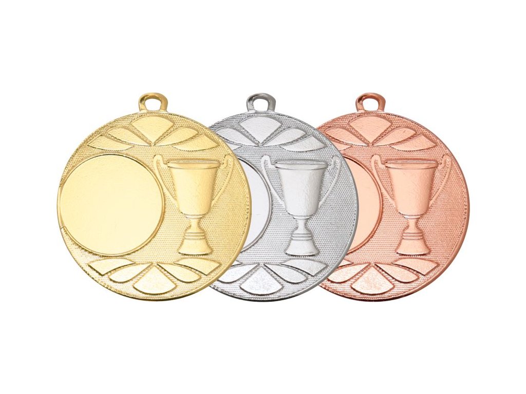 Metál érem kehellyel arany, ezüst vagy bronz kivitelben szalagra akasztható (az Ön választása szerint). Az előlapon lehetőség van saját embléma elhelyezésére vagy a kínálatból ( átmérő 25mm). Az érem hátoldalán lehetőség van grafika/szöveg elhelyezésére (átmérő 45mm).