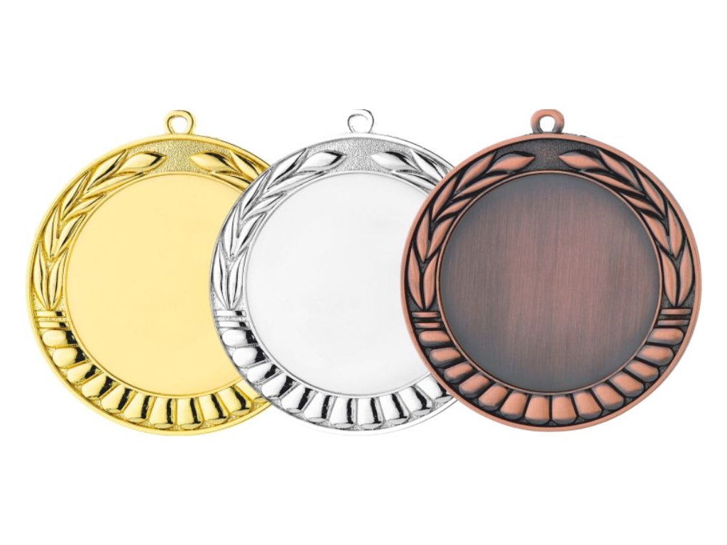 Metál érem arany, ezüst vagy bronz kivitelben szalagra akasztható (az Ön választása szerint). Az előlapon lehetőség van saját embléma elhelyezésére vagy a kínálatból ( 50 mm átmérőjű). Az érem hátoldalán lehetőség van grafika/szöveg elhelyezésére (átmérő 50mm).