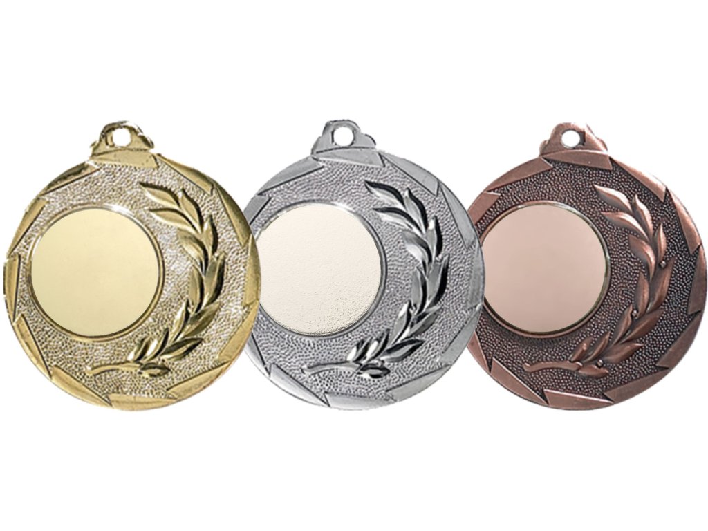 Metál érem arany, ezüst vagy bronz színben, érdekes részletekkel és a szalagra akasztás lehetőségével (az Ön választása szerint). Az előlapon lehetőség van saját embléma elhelyezésére vagy a kínálatból ( 25 mm átmérőjű). Az érem hátoldalán lehetőség van grafika/szöveg elhelyezésére (átmérő 40mm).