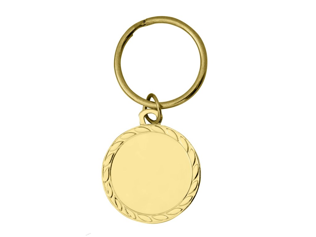 Stílusos kulcstartó arany kivitelben, az elülső oldalon egy Ön által választott embléma (25 mm) elhelyezésének lehetőségével + a hátoldalon gravírozási lehetőséggel.
