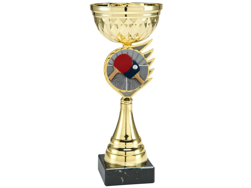 A kehely stílusos megjelenését a márvány talapzaton elhelyezett fém kehely alatt a 3D BL-emblémának helyet adó domináns elem teremti meg. Ideális választás minden sportághoz, és kiegészül az asztalitenisz témájú emblémával + a talapzaton elhelyezett gravírozott címke lehetőségével. 3 méretben kaphatóak változatok a díjazottak sorrendjének lefokozásához..