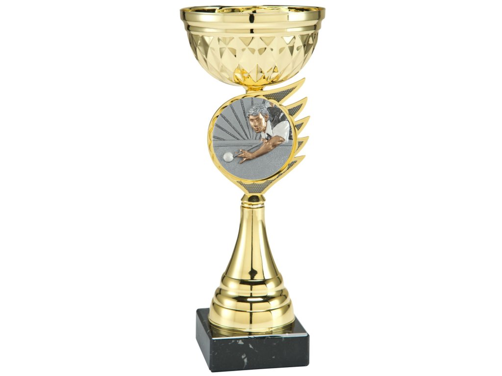 A kehely stílusos megjelenését a márvány talapzaton elhelyezett fém kehely alatt a 3D BL-emblémának helyet adó domináns elem teremti meg. Ideális választás minden sportághoz, és kiegészül a biliárd témájú emblémával + a talapzaton elhelyezett gravírozott címke lehetőségével. A változatok 3 méretben állnak rendelkezésre a díjazottak sorrendjének osztályozásához.