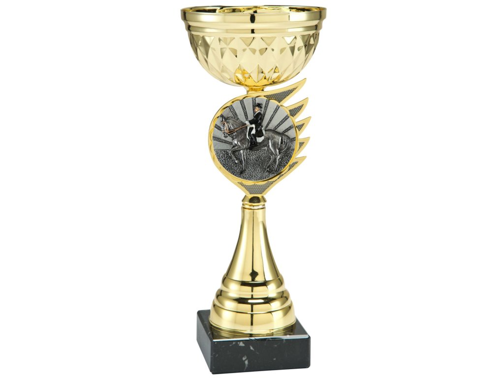 A kehely stílusos megjelenését a márvány talapzaton elhelyezett fém kehely alatt a 3D BL-emblémának helyet adó domináns elem teremti meg. Ideális választás minden sportághoz, és kiegészül a lovas témájú emblémával + az alapra helyezett gravírozott lemez lehetőségével. A változatok 3 méretben kaphatók a fokozatos díjazási rangsorokhoz.