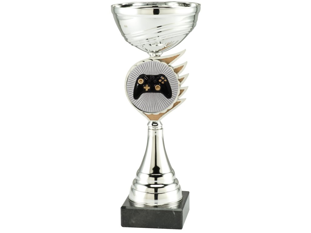 A kehely stílusos megjelenését a márvány talapzaton elhelyezett fém kehely alatt a 3D BL-emblémának helyet adó domináns elem teremti meg. Ideális választás minden sporttípushoz, és kiegészül az e-sport motívummal ellátott emblémával + a talapzaton elhelyezett gravírozott címke lehetőségével. A változatok 3 méretben állnak rendelkezésre a fokozatos díjrendeléshez.