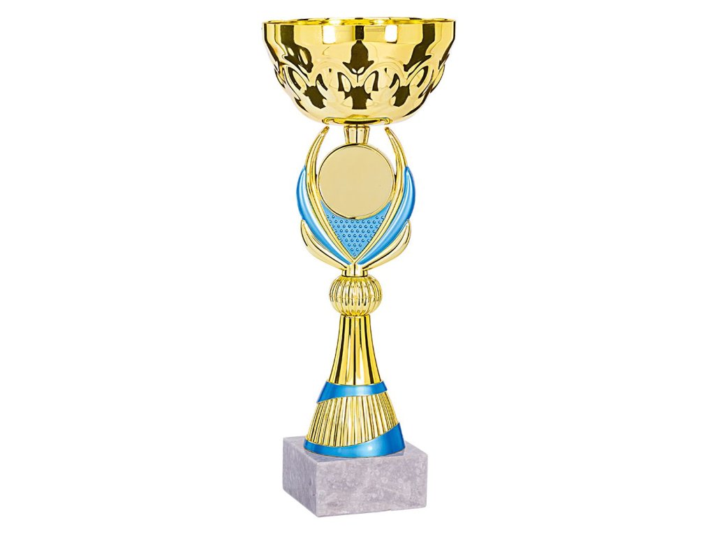 A márványalapra helyezett kehely és a szár aranyszínű kombinációjának finom részletei tovább fokozzák a kehely elegáns megjelenését. A szárra egy tetszés szerinti embléma ( 25 mm átmérőjű) helyezhető . A változat 4 méretben kapható a díjazottak sorrendjének fokozatossága érdekében.
