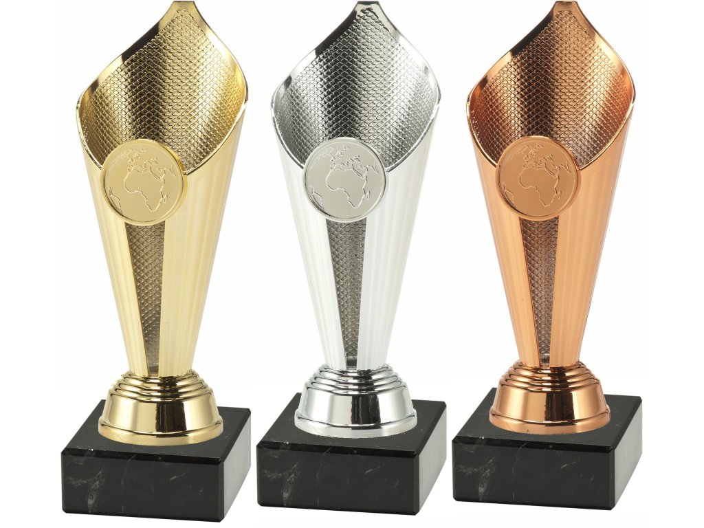 Egyetlen Serleg arany, ezüst vagy bronz színben, márvány alapon. A trófea kiegészíthető egy emblémával - 25 mm átmérőjű (nem tartozék) és egy gravírozott táblával, amely az alapra kerül. A díjazottak sorrendjének fokozására 3 színváltozat áll rendelkezésre.