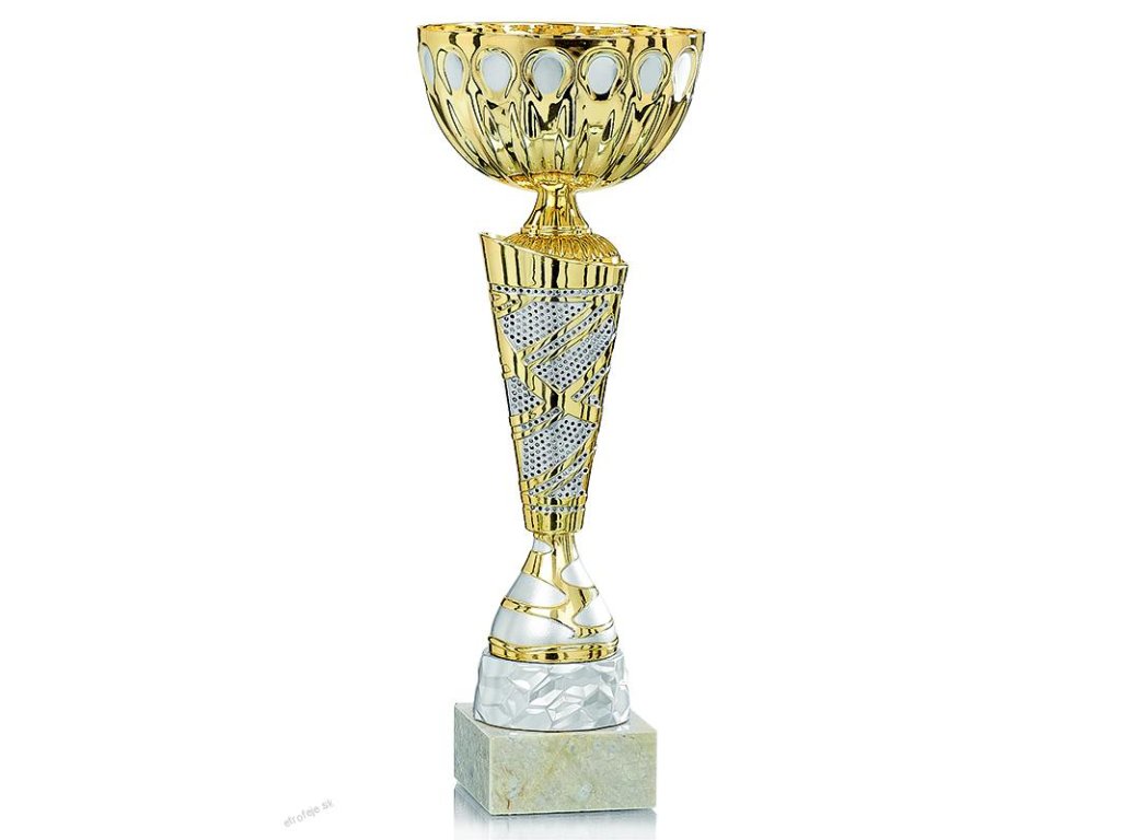 A pohár elegáns megjelenését a márványalapra helyezett kehely adja, melynek szárán finom ezüst részletek találhatók. Ideális választás minden sportághoz, és kiegészül a talapzaton elhelyezett gravírozott lemez lehetőségével. A díjazottak sorrendjének fokozatos leosztásához 3 méretben kaphatók változatok.