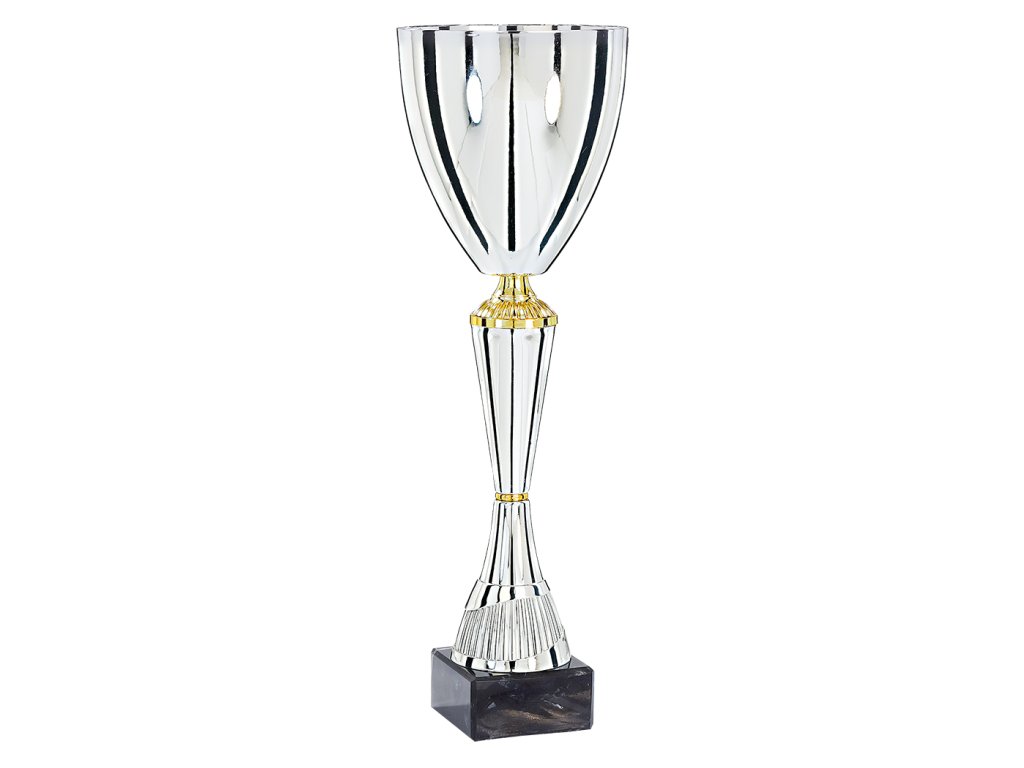A pohár modern kialakítása elegáns kehelyformát hoz létre, a száron aranyszínű részletekkel, amely márványalapra helyezett. Ideális választás minden sportághoz, és kiegészíthető a talapzatra helyezett gravírozott címkével. 4 méretben kapható változat a díjazottak sorrendjének lefokozásához.