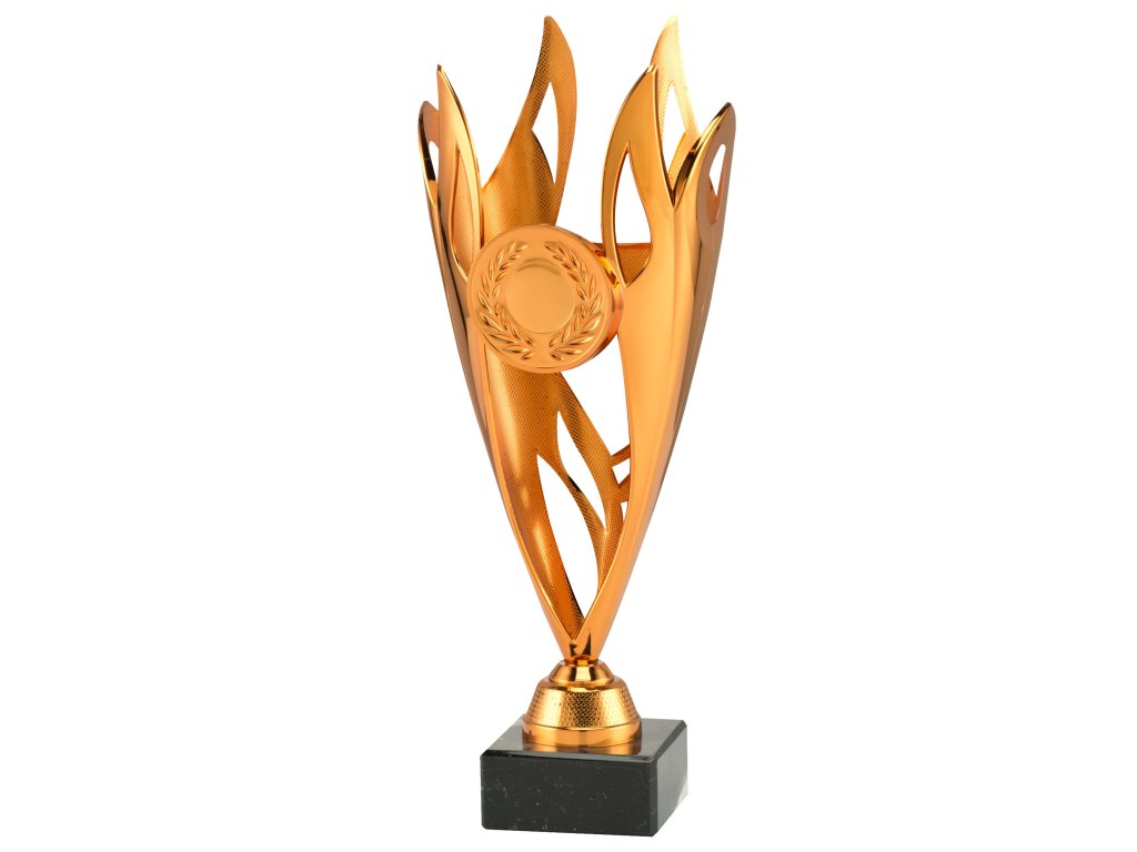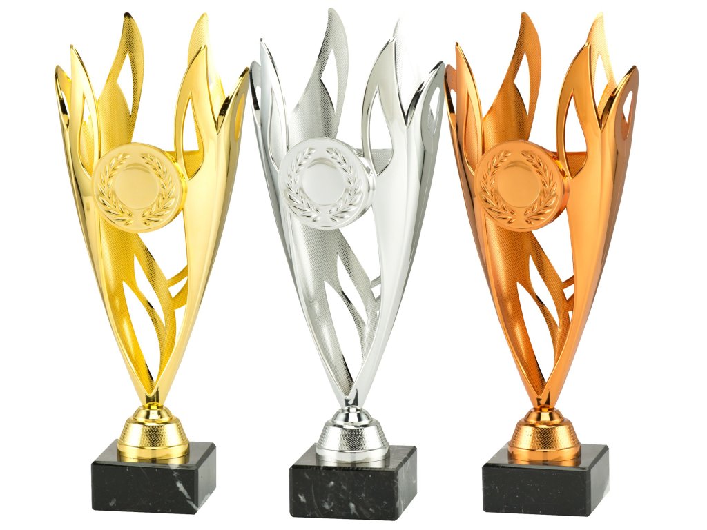 Egyedi serleg aranyból, ezüstből vagy bronzból, érdekes részletekkel a kehelyen, márványalapra helyezve. A trófea kiegészíthető egy gravírozott címkével, amely az alapra kerül. A díjazottak sorrendjének beosztásához 3 színváltozat áll rendelkezésre. Lehetőség van d 25 mm-es embléma elhelyezésére (a serleg ára nem tartalmazza)