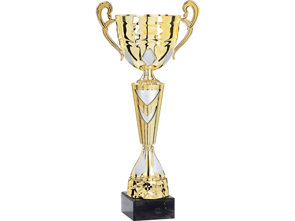 A pohár modern kialakítása elegáns kehelyformát hoz létre, a száron füllel és ezüstös részletekkel, amely márványalapzaton áll. Ideális választás minden sportághoz, és kiegészíthető a talapzatra helyezett gravírozott címkével. 4 méretben kapható változat a díjazottak sorrendjének lefokozásához.