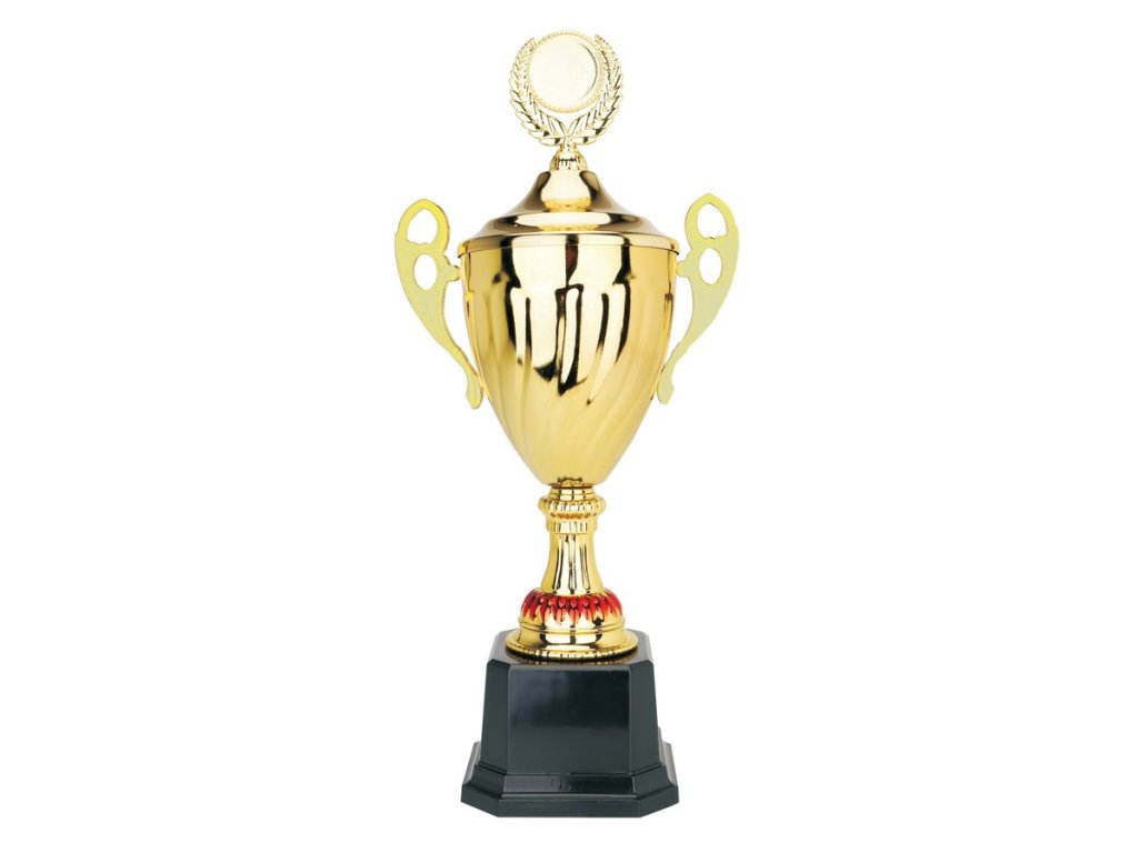 A pohár elegáns megjelenését egy műanyag talapzaton lévő aranyszínű kehely adja, amelynek szárán füleket és piros részleteket találunk, és amelyet egy céltáblával ellátott fedél egészít ki, amelyre egy embléma (50 mm) helyezhető. A fedél szilárdan a csészéhez van rögzítve, és nem távolítható el. Ideális választás minden sportághoz, és kiegészíthető az alapra helyezett gravírozott címkével. 3 méretben kapható változat a díjazottak sorrendjének fokozatos leosztásához.