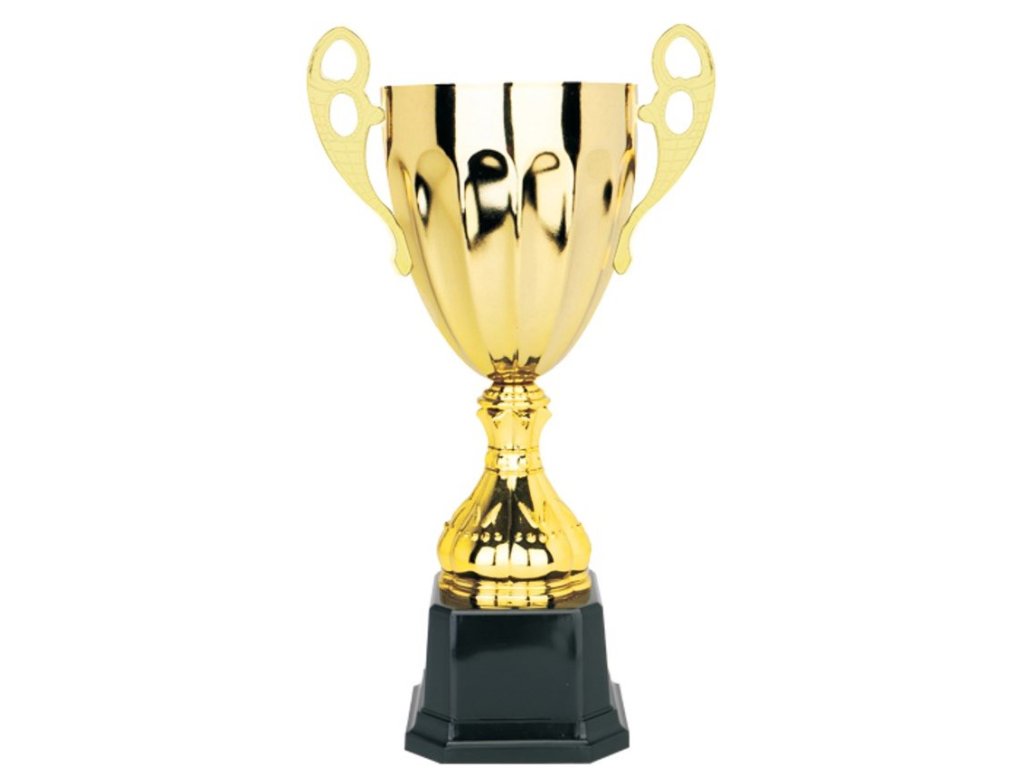 A pohár elegáns megjelenését a műanyag talapzatra helyezett füles kehely stílusos formája teremti meg. Ideális választás minden sporttípushoz, és kiegészíthető az alapra helyezett gravírozott címkével. 4 méretben kapható változat a díjazottak sorrendjének fokozatos leosztásához.