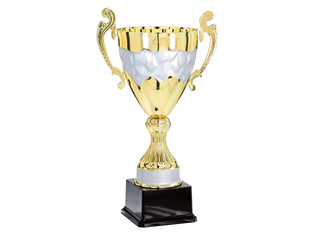 A pohár modern kialakítása elegáns kehelyformát hoz létre, fülekkel és ezüstös részletekkel, amely műanyag talapzaton áll. Ideális választás minden sportághoz, és kiegészíthető az alapra helyezett gravírozott címkével. 3 méretben kapható változat a díjazottak sorrendjének beosztásához.