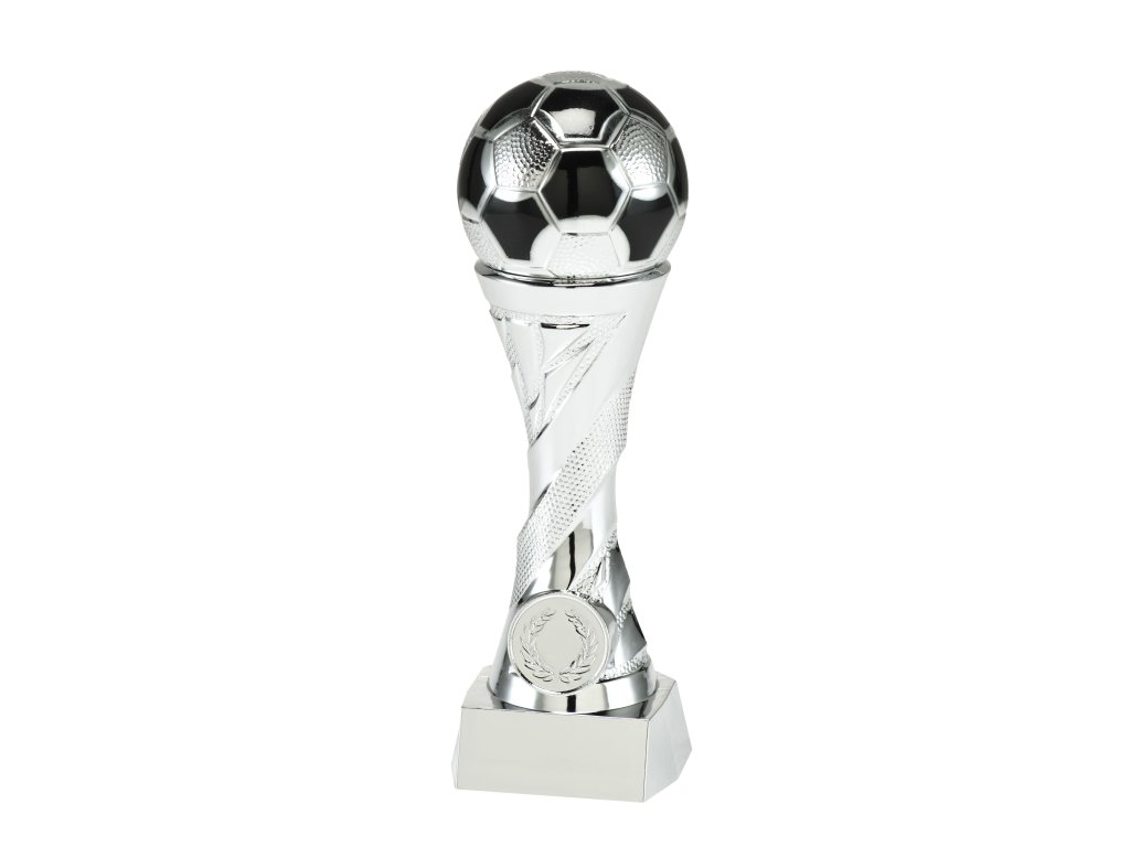 Egyedi trófea ezüst kivitelben, beágyazott focilabdával, talapzaton. A trófea kiegészíthető egy emblémával (25 mm átmérőjű) és egy gravírozott táblával, amely a talapzatra kerül.
