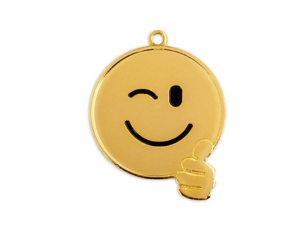 Metál érem mosoly motívummal, arany kivitelben szalagra akasztható (az Ön választása szerint). Az érem hátoldalán lehetőség van grafika/szöveg elhelyezésére (43 mm átmérőjű).