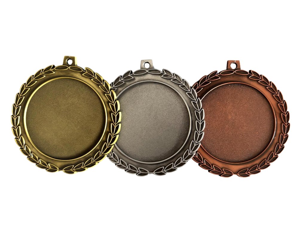 Egyedi formájú fémérem arany, ezüst vagy bronz kivitelben szalagra akasztható (az Ön választása szerint). Az előlapon lehetőség van saját embléma elhelyezésére vagy a kínálatból ( 50 mm átmérőjű). Az érem hátoldalán lehetőség van grafika/szöveg elhelyezésére (átmérő 50mm).