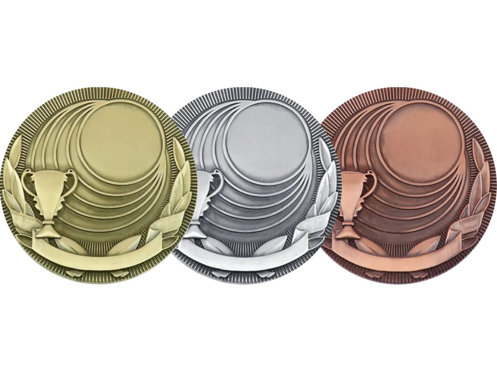 Egyedi formájú fémérem arany, ezüst vagy bronz kivitelben szalagra akasztható (az Ön választása szerint). Az előlapon lehetőség van saját embléma elhelyezésére vagy a kínálatból ( 25 mm átmérőjű). Az érem hátoldalán lehetőség van grafika/szöveg elhelyezésére (átmérő 50mm).