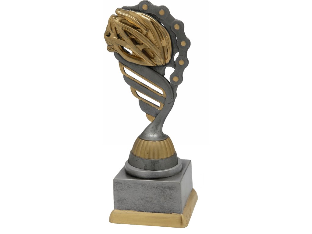 Stílusos trófea kerékpáros motívummal és a talapzatra gravírozott tábla elhelyezésének lehetőségével. A trófea ideális választás a rajongók vagy a legjobb kerékpárosok díjazására.