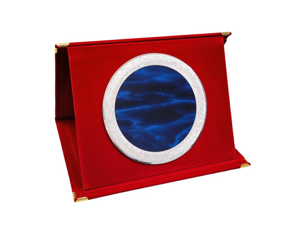 Az elegáns plakett egy piros bársony SLIM dobozban található. Kék díszítőfémre van gravírozva, ezüst keretezéssel. A plakett a részletekre és a dizájnra való odafigyeléssel készült, ami egyedi jelleget kölcsönöz a megjelenésének. A plakett kialakítása miatt ideális választás különböző típusú társadalmi eseményekhez, különleges sporteseményekhez stb. Az ár tartalmazza a gravírozást.
