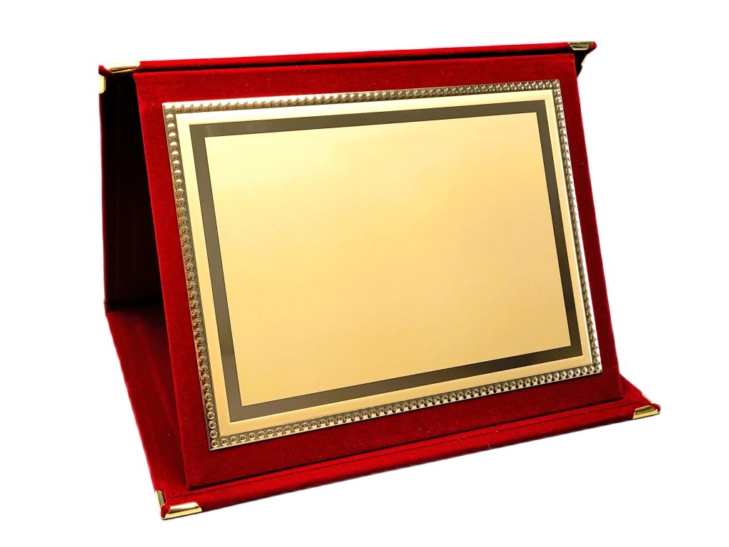 Az elegáns plakett egy piros bársony SLIM dobozban található. A szublimációs hátlap egy dekoratív lap, amely arany csillogású, oldalain tükrös részletekkel. A plakett kialakítása miatt ideális választás különféle társasági eseményekre, különleges sporteseményekre stb. Az ár tartalmazza a szublimálást.