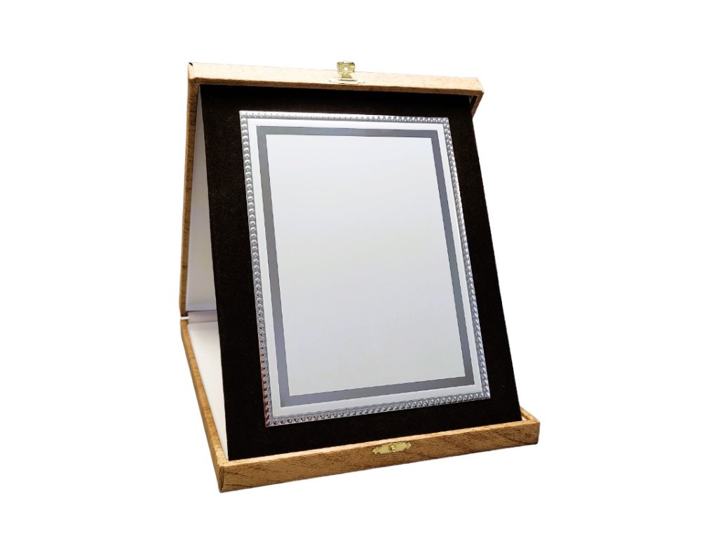 Az elegáns emléktábla egy barna, tájolású dobozban van elhelyezve. A szublimációs hordozó egy dekoratív lap, amely ezüstös csillogású, oldalain tükrös részletekkel. A plakett kialakítása miatt ideális választás különböző típusú társadalmi eseményekre, különleges sporteseményekre stb. Az ár tartalmazza a szublimálást.